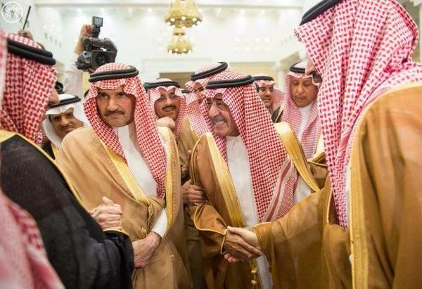 الأمير الوليد بن طلال مع الملك سلمان ونجله محمد