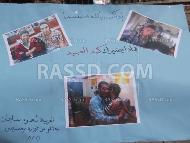 ويشارك في الوقفة جميع أسر الكلية بالإضافة إلى اتحاد الطلاب،رافعين أعلام تحمل صور الثلاثة طلاب وصورهم ولوح معبرة كتبوا فيها عبارات تنادي بحرية زملائهم .