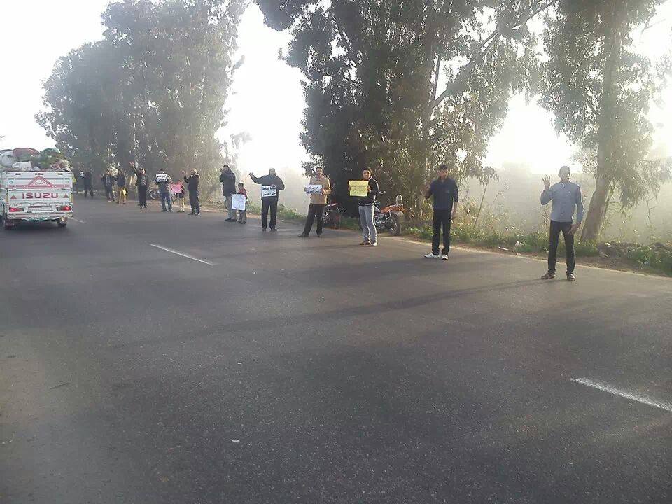 نظم ثوار كفر سعد سلسلة بشرية فى تمام الساعة السابعة صباحا على طريق دمياط المنصورة الزراعى المقابل لمدينة كفر سعد بمحافظة دمياط .