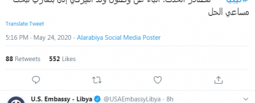 إعلام جديد أميركا السفارة الأميركية في ليبيا تكذب فضائية سعودية عبر تويتر الإثنين، 25 مايو 2020، 7:08 م
